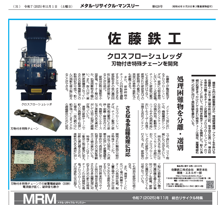 この度、2025年11月1日発売の【メタル・リサイクル・マンスリー11月号】に弊社が紹介されました。