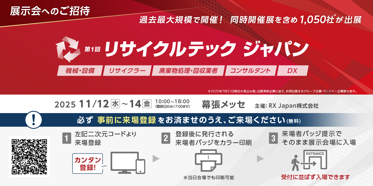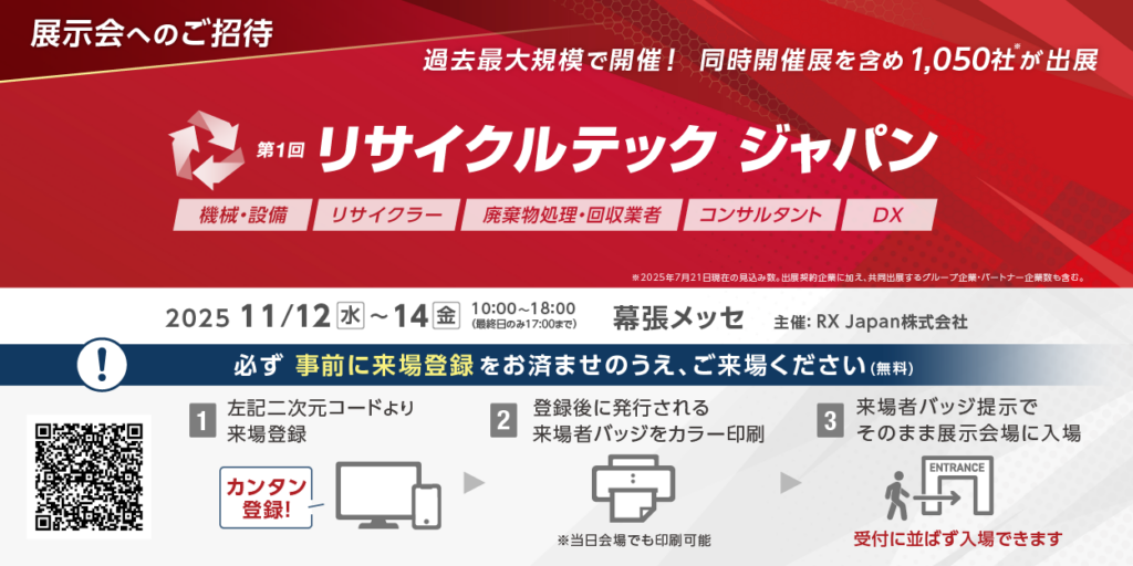11/12~14の三日間、幕張メッセにて行われる第1回リサイクルテックジャパンに